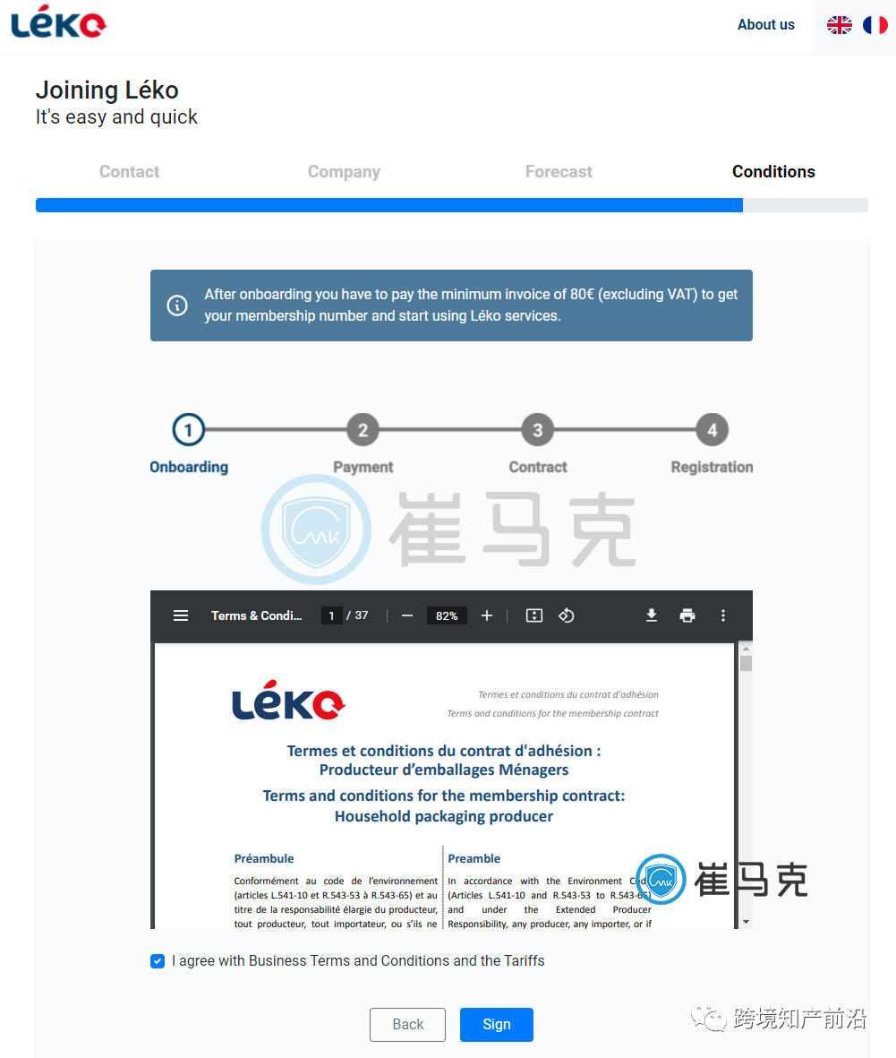 1. 首先需要选择法国本土回收机构签约,市场上基本是选择LEKO进行签约,进入回收机构官网(PS:注册链接可以私信获取):