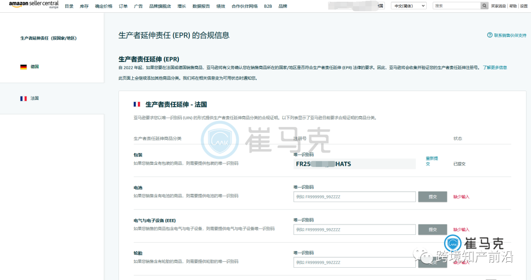 亚马逊法国包装法UIN自助注册教程